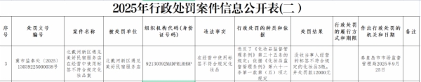 北戴河新区遇见美好民宿服务店在经营中使用标签不符合规定化妆品行政处罚决定书