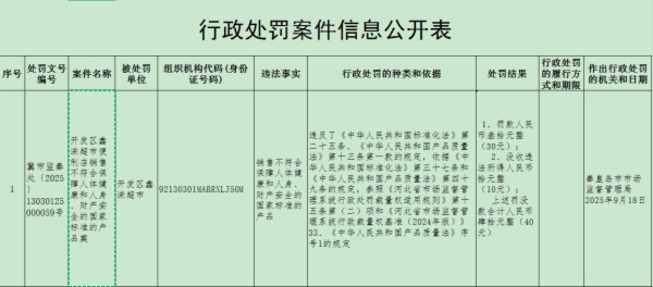 开发区鑫涞超市便利店销售不符合保障人体健康和人身、财产安全的国家标准的产品案
