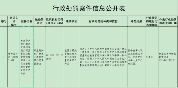 秦皇岛兴龙广缘商业连锁有限公司孟营分店经营农药残留超过食品安全标准限量的食用农产品案