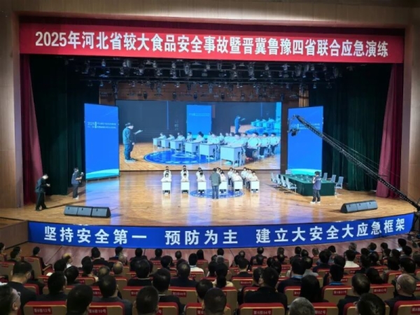 9月23日上午,由河北省市场监管局、邯郸市人民政府主办,邯郸市市场监管局、大名县人民政府承办,山西省长治,山东省聊城、菏泽,河南省安阳、濮阳三省五市市场监管局协办的“2025年河北省较大食品安全事故暨晋冀鲁豫四省联合应急演练”在邯郸市大名县成功举办。