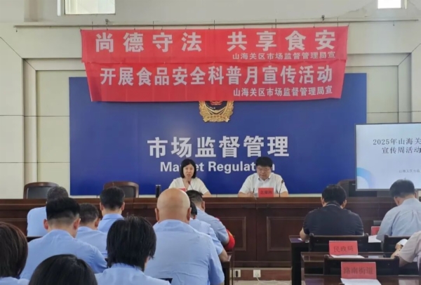 9 月 19 日,以 “尚德守法 共享食安” 为主题的食品安全宣传周启动仪式在山海关区市场监管局举行。区食品相关行政执法人员,以及重点名优食品生产、销售、餐饮企业参加。