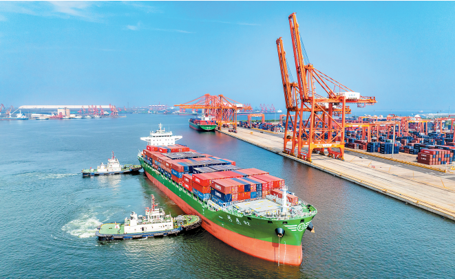 近日,一艘货轮在靠泊唐山港京唐港区集装箱码头。唐山港货物吞吐量稳居世界沿海港口第二。记者 赵杰摄
