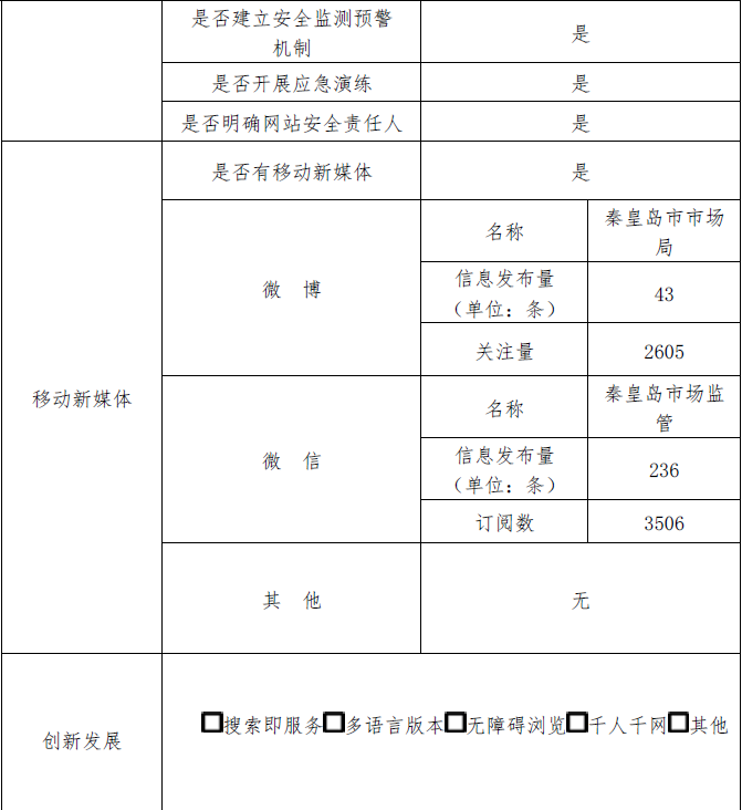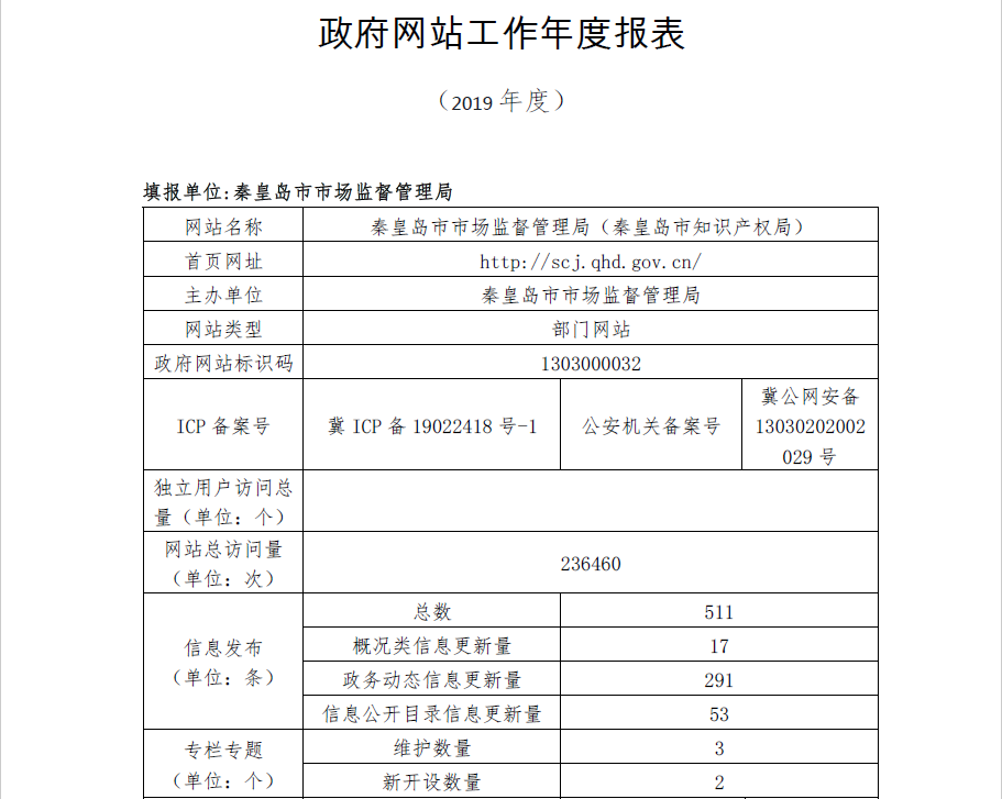秦皇岛市市场监督管理局政府网站工作年度报表